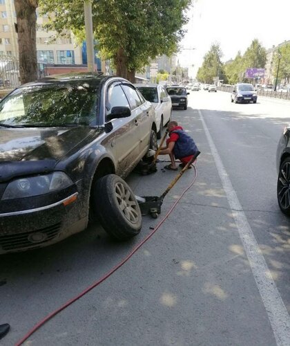 Реально, кальян есть и «босс» его наяривает. Трудяга пашет с подручными средствами заместо инструмента. Атмосфера банановой республики))) до начала работы сразу сказали открыто сумму (небольшая за мои колёса)…все сделали…пыхтел да делал и получилось.